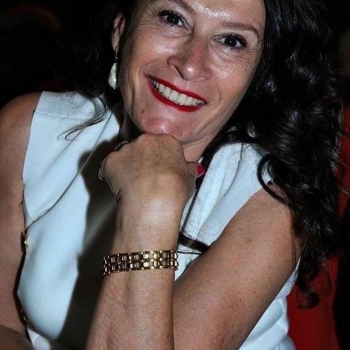 We verbraken de knuffel en ik zag dat Elly al begon haar jurk uit te trekken. Elly is een mooie rijpe vrouw met een grote voorgevel. Ik ben slecht in cupmaten schatten, maar ik denk een DD of misschien wel E cup. Persoonlijk houd ik niet zo van grote borsten, maar bij mijn haar staat het gewoon goed. Verder heeft ze donker blond haar geknipt in een korte snelle look. Ik stond aan de grond genageld en zag de trip-tease van Elly voor mijn ogen gebeuren. Joyce gaf me een tikje op mijn schouder en zie ‘Je mond staat open. Dat is niet zo beleefd hoor.’