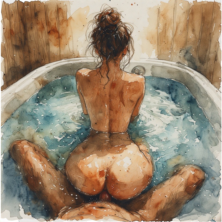 Ik voelde de gretigheid in mijn onderbuik om vreemd zaad te ontvangen. Ik liet me achteruit op hem zakken met mijn armen rond zijn hoofd en hij kuste me in de nek. Ik kwam hierdoor op een plotse, hevige manier klaar en sidderde fel wat gelukkig niet opviel onder de bubbels van de jacuzzi. Willy bleef nu diep in me stoten en ik voelde aan zijn bewegingen dat hij zou komen. “Hou je niet in.”, fluisterde ik in zijn oor, “ik ben vruchtbaar dus profiteer er van”. Mijn woorden brachten hem in een hevig orgasme en als een wild dier stootte hij de inhoud van zijn ballen in me leeg. Dit was zo kort en intens dat we beiden bleven naschokken.