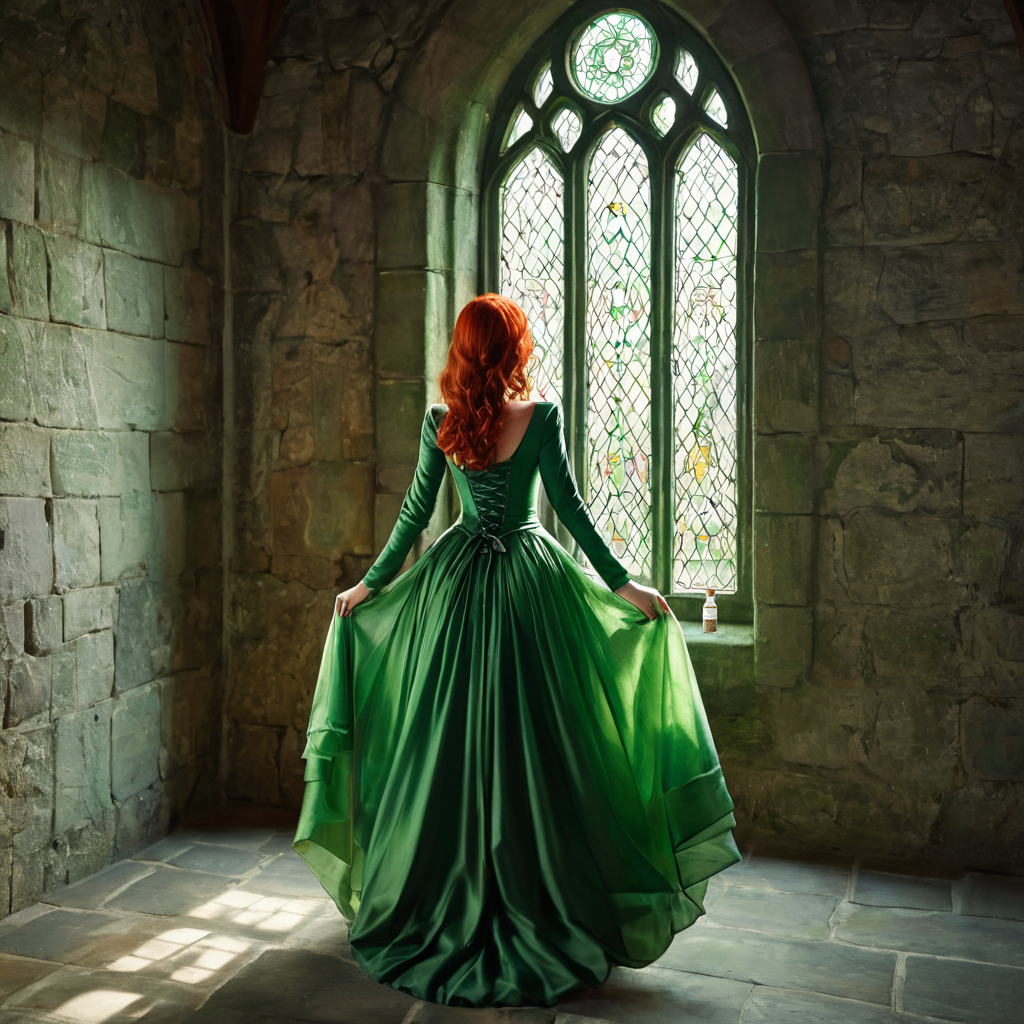 Ik stap langs hem heen de kamer in. Deze kamer heeft twee vertrekken. In de eerste ruimte bevinden zich twee bedden en een grote donkere kast. De zon zet de ruimte in een geel licht door het venster met de vele vensterruitjes. Links bevindt zich een doorgang naar een rond vertrek in één van de Donjons. De beide bedden zijn onopgemaakt en kleding hangt slordig over een stoel. Langzaam draai ik rond en laat mijn blik door de ruimte glijden, op zoek naar dat kleine flesje.