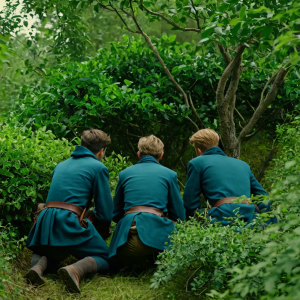 Het besef dat alles verloren is nog voor we ook maar een poging hebben kunnen doen om onze vrienden te redden, maakt me moedeloos. Langzaam sta ik op, mijn hoofd naar de grond gebogen. Het zwaard glijdt naar mijn rug, waar het een paar keer port om me naar voren te dwingen. Ook Willem en Karel stappen ongemakkelijk door het struweel naar de open plek.