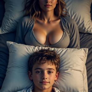 Maar daardoor moest zich wel uitrekken om mijn schouders te bereiken, en ik voelde zijn erectie tegen mijn billen drukken! Een paar minuten gingen voorbij, terwijl ik nadacht over hoe ik met deze nieuwe situatie om moest gaan. Ik besefte wel degelijk, dat mijn zoontje zich ook bewust was van de nieuwe situatie.