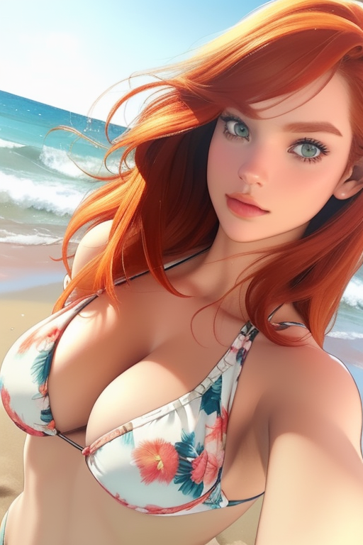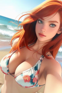 Het was wel een moment waar ik naar uit had gekeken. Haar handen vonden het koortje van haar korte, blauwe broekje en ze trok de lus los met een speelse grijns. Huppend liet ze het over haar gladde, ronde dijen vallen en over haar slanke kuitjes. Haar schoenen had ze al in het zand laten vallen. Ik volgde dat voorbeeld alvast. Ik kon mijn blik niet van haar afhouden. Haar blik en die lach. Ze wist dat ik naar dit moment had uitgekeken. Ook al had ik haar al zo vaak naakt gezien of in iets anders verleidelijks. Alles wat ze droeg, maakte ze verleidelijk. Het was een kleine moeite om een account aan te maken en ik kon haar op ieder moment van de dag in een bikini bekijken. Maar nu stond ze voor me op het strand in de warme zon en de frissen wind. Haar handen vonden de rand van haar topje. Haar zwemslip was te zien, wit met een fleurig bloemenmotief, en terwijl ze voor me bleef staan trok ze net iets langzamer dan normaal zou zijn de stof over haar hoofd heen uit, en vielen haar lange, rode haren weer dwarrelend naar beneden, terwijl haar blik plots tien keer zo zwoel stond. Haar bikinitopje had dezelfde kleur en hetzelfde motief. Haar huis was nog bleek, wat een mooi contrast was met haar grote, groene ogen en haar lange, rode haren. De witte stof maakte datzelfde contrast door het bloemenmotief. Ze zal er vast over nagedacht hebben. Want ze klopte weer van top tot teen. Met open mond stond ik daar haar te aanschouwen, en ik had al lang niet meer koud. Ik raakte oververhit van haar.