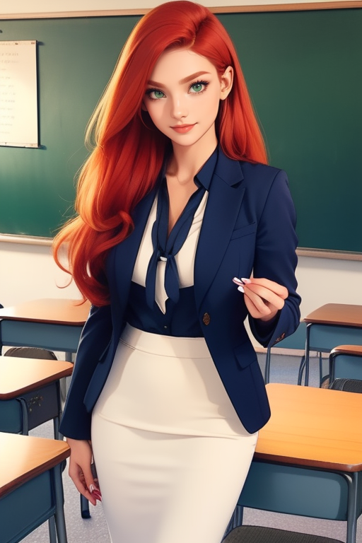 Ik opende de deur met een zachte klik en stapte binnen, mijn casual schoudertas nonchalant aan mijn zijde. De ruimte voelde intiemer zonder de gebruikelijke aanwezigheid van de andere studenten. Mijn lange rode haar viel in golven over mijn schouders en mijn grote groene ogen glansden met zelfvertrouwen. Vandaag had ik gekozen voor een outfit die zowel elegant als uitdagend was, iets dat mijn rondingen op subtiele wijze accentueerde, wetende dat het mij zou helpen met mijn foute plannetje. Mijn blik gleed over Luke, die diep gebogen zat over zijn boeken, zijn fronsen verraden de stress die hij voelde. Luke Longwood was zijn naam, en misschien binnenkort wel mijn favoriete student.