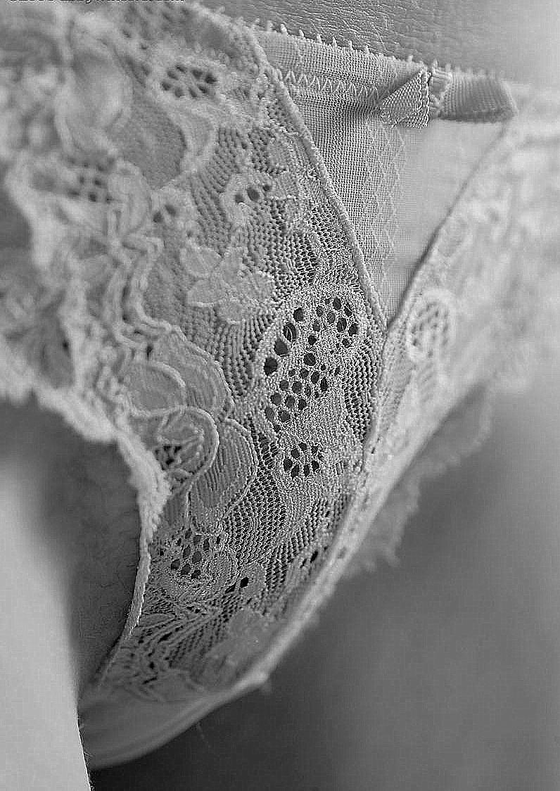 'Hoe attent ben jij,' antwoordde Sky, 'ik zou er zelf niet aan gedacht hebben. Dat zal ik meteen ook doen.' En terwijl ik mijn mond nog aan het spoelen was, kwam ze ongegeneerd de badkamer binnen om aan de wastafel naast de mijne haar tanden te poetsen. Door de strakke bustier bleven haar borsten perfect op hun plaats zitten. Maar nu keek ik mijn ogen uit op haar strakke billen in die spannende slip, aan de voorzijde helemaal in kant en op de rug in nauw spannend satijn. Ik kon bijna niet aan de verleiding weerstaan om haar rug te strelen,van haar nek tot over haar billen tot haar knieholten. Finn had een volle figuur, om niet te zeggen: gezellig dik. Sky was slank zonder mager of dik te zijn, gewoon een normaal lijf en nu stond ik mezelf toe om nieuwsgierig te zijn hoe ze er zonder kleren uitzag.