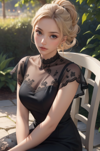 Kort daarna verscheen Jessica. Zij had een volledig andere aanpak gekozen. Ze droeg een elegante, zwarte jurk die net boven haar knieën eindigde, versierd met delicate kanten randjes die haar outfit een verfijnde, bijna mysterieuze uitstraling gaven. Haar haar had ze netjes opgestoken, wat haar gezicht nog stralender deed uitkomen, en ze droeg eenvoudige, maar stijlvolle oorbellen die subtiel schitterden in het avondlicht. De hoge hals van haar jurk bood geen inkijk, maar juist dat maakte haar uitstraling zo krachtig en intrigerend. Het was alsof ze met haar ingetogen stijl wilde laten zien dat ze geen afleiding nodig had om indruk te maken. En het werkte. Ze zag eruit als een klassieke schoonheid, elegant en geraffineerd.