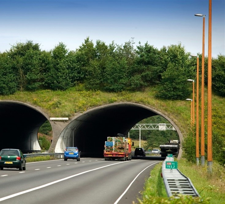Toen er een paar kilometer verderop een tunneltje opdoemde nam Amanda de eerstvolgende afslag, en reed ze een bospaadje in, waarna ze de auto parkeerde. "We zijn er, uitstappen, trek je string maar uit en laat die maar in de auto liggen, want die heb je niet nodig", zei Amanda, waarna ze een maskertje tevoorschijn haalde, waar ze haar gezicht mee bedekte, en ook een paar exemplaren aan Johan en Karin overhandigde. "Wat is de bedoeling van deze gezichtsbedekking ?", vroeg Karin, waarop Amanda antwoordde: "Je wilt toch niet de kans lopen om door eventuele bekenden herkend te worden ?". Karin begreep steeds minder van deze poppenkast , maar deed toch maar wat haar oma vroeg, waarna ze het door gras en struiken overwoekerde viaduct op liepen, waarbij Karin een fris briesje onder haar rokje over haar kale kutje voelde gaan, en ze zich al snel een weg baanden door de struiken aan de zijkant, en het verkeer onder hen door zagen razen. "We moeten wel voorzichtig zijn en opletten dat we niet betrapt worden door een boswachter, want eigenlijk mogen we hier niet komen, het is een ecoduct, zodat dieren zonder gevaar de snelweg over kunnen steken", zei Amanda. "Dit is een beter plekje dan de vorige keer, en als we een beetje in het midden op het schuine gedeelte tussen de tunnelbuizen plaatsnemen staan we een stuk minder hoog, en kunnen we de automobilisten eens flink van dichtbij opgeilen, maar pas wel op dat je niet uitglijdt", zei Amanda, waarna ze haar rok omhoog tilde, haar bloes opende, en net als de vorige keer jolig dansend de naderende automobilisten een kijkje gunde op haar kale kut en tieten.
