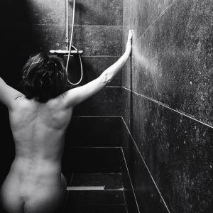 Ik was echt super geil, hij bleef mijn lichaam trilgeren en uitdagen, ik bleef met mijn hoof gebogen, mijn haren over mijn hoofd onder het hete water staan, en voelde en genoot van elke beweging van hem op mijn lichaam.