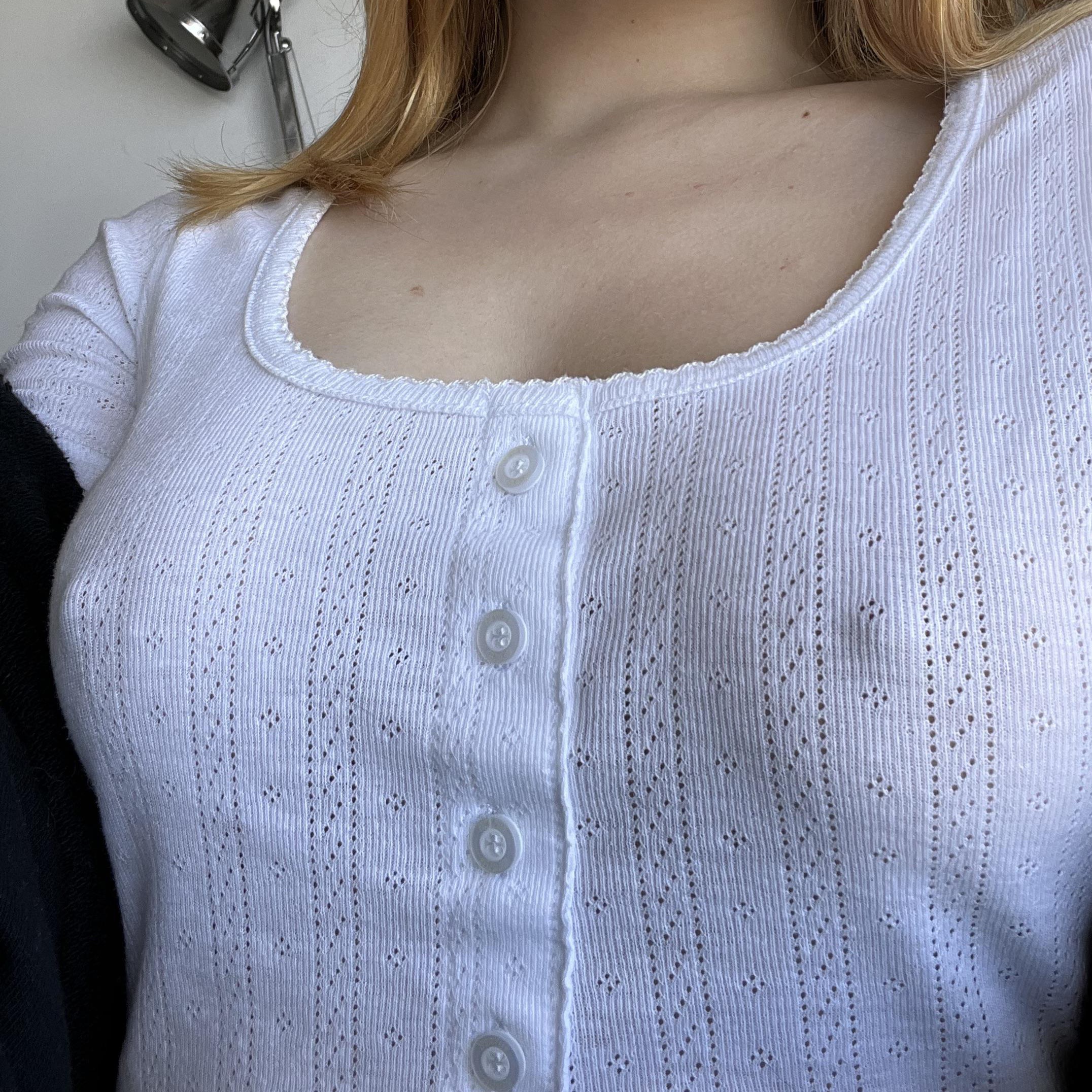 Anna droeg een wijde zomerrok, en een wit, strak shirtje met lange mouwen en drukknoopjes. De bovenste 4 knoopjes stonden open en ze had geen bh aan. Het shirtje zat strak om haar heerlijke tietjes, en haar tepels priemden door de stof.