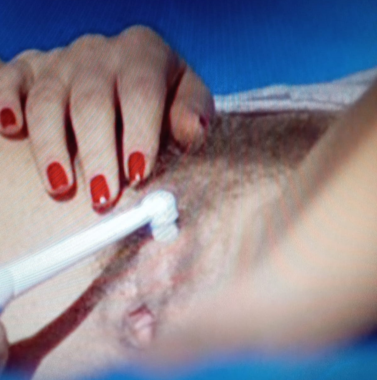 "Schatje, een tandenborstel is ook niet geschikt voor die geile klit van jouw".
