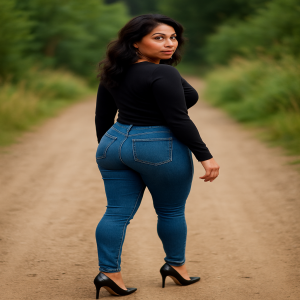Ondanks dat ze voor me uit liep, voelde ik haar opwinding. Ze genoot er duidelijk van om bekeken te worden. Ze droeg hoge haklaarzen tot net onder haar knieën. Haar mooie rondingen zaten verpakt in een sexy jeans en ze had een kort jasje aan. Haar lange donkere haren zaten opgestoken in een knot. Haar hele houding straalde sensualiteit uit en ze liep al schuddend met haar billen voor me uit.