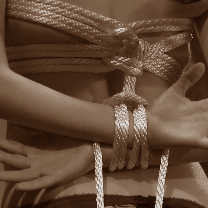 Meester Yumo liep om haar heen, streelde haar gezicht. Ze zag hoe hij Aiko wenkte. De druk op de zuigertjes verminderde, Inge slaakte een zucht. De slavin haalde de zuigertjes van haar borsten en clitoris af, smeerde zowel haar tepels als haar vagina in met een prettig geurende lotion. De aanraking van haar vagina bezorgde haar nog een paar naschokken, alles was enorm gevoelig. Aiko trok de gemberwortel uit haar kontje, en Inge voelde hoe haar anus zich sloot. Het branden was inmiddels voorbij. Nu werd haar bamboeknevel verwijderd. Inge slikte en likte langs haar lippen. Het werd tijd om haar nu van de touwen te bevrijden. Het was absoluut niet verlossen, want daarvoor was het gebonden zijn te fijn geweest. Alles ging in omgekeerde volgorde: Eerst haar benen, toen die weer voldoende doorbloed waren, lieten ze haar zakken, zodat ze, hangend aan haar harnas, weer kon staan. Toen ze geheel touwloos was, voelde het als bevrijding, maar ze voelde ook een verlies: verlies van het comfortabele gevoel, niets te hoeven alleen te ondergaan.