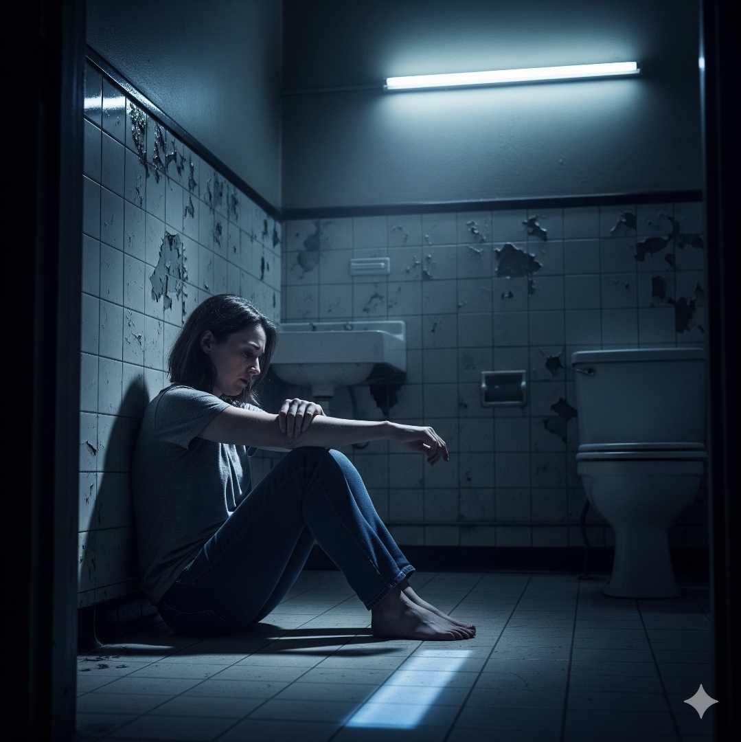 “Zie je wel,” fluistert de stem in mijn hoofd, en het klinkt als mijn eigen gedachte. “Je bent echt gek. Je bent gestoord. Wie doet zichzelf zoiets aan? Alleen een ziek, zielig wijf.”