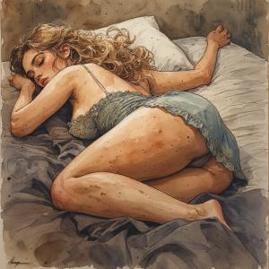 Jan stapte zachtjes naar binnen. Hij wilde alleen het dekbed over haar heen trekken, zoals hij duizend keer had gedaan. Maar toen hij zich vooroverboog, zag hij de zachte ronding van haar onderrug, de manier waarop het nachthemd net over haar billen spande, de lange, blote benen die loom over elkaar lagen. Haar huid glansde zacht in het maanlicht, glad en jong en… mooi. Té mooi.
