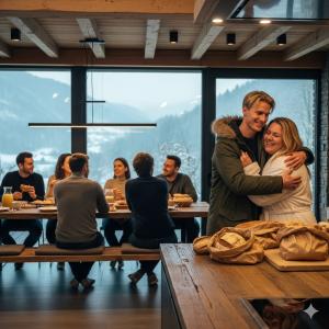 "Zo, nog altijd niet klaar hier?" mompelt ze, haar stem schor maar met die typische zure ondertoon die Kristof zo goed kent. "Jezus, we rammelen van de honger." Kristof voelt een vlaag van ergernis, maar besluit het direct om te buigen. Hij draait zich langzaam om, de stomende mok in zijn hand als een scepter. Hij grijnst breed, opzettelijk traag en provocerend. "Mea culpa, dames," zegt hij met fluwelen stem. Hij werpt een veelbetekenende, bijna bezitterige blik op Leen, die even opkijkt van het tafeldekken. "Ik was de tijd verloren. Ik wou nog even met mijn vrouwtje knuffelen. Je weet hoe dat gaat, prioriteiten."