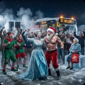 Alain staart naar het tafereel. Hij ziet de uitputting in Claus’ ogen. De Kerstman is sterk, maar hij vecht tegen de personificatie van de winter in haar eigen huis. Zijn vlam begint te flakkeren. De rauwe agressie is niet genoeg. Ze hebben de magie van de bus nodig. De magie van de chaos.
