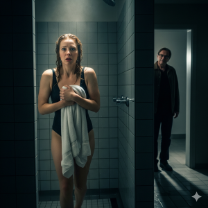 Het duurt even voordat de stilte terugkeert. De douche wordt dichtgedraaid. Dirk herstelt zich. Hij weet dat hij weg moet, maar zijn voeten lijken vastgevroren aan de tegels. Hij blijft staan. Wanneer Els de doucheruimte uitkomt, rood aangelopen en met haar handdoek strak om zich heen geklemd, staat hij daar. Midden in het gangpad. Ze botst bijna tegen hem op. "Jezus, Dirk!" roept ze, schrikkend. "Wat doe jij hier?" Dan ziet ze zijn gezicht. Ze ziet de blos op zijn wangen, de ietwat verwilderde blik achter de beslagen brilglazen, en de manier waarop hij nog steeds zwaar ademt. Haar blik glijdt omlaag, naar zijn zwembroek, en dan weer omhoog naar zijn ogen.