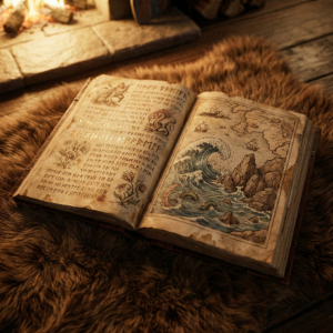 Haar ogen twinkelen terwijl ze de pagina omslaat. “Dat is het mooiste deel. Luister. ‘De sacrale Grot van Oorsprong is ingewijd op het fundament van de Eersten, waar het woud de zee ontmoet.’” Ze kijkt me verwachtingsvol aan.