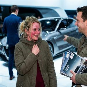 Elise grist haar jas van de achterbank en krabbelt de auto uit. Haar benen voelen als gelei, haar kleding zit nog niet helemaal goed. De koude, lawaaiige hal voelt als een klap in haar gezicht na de intieme hitte van de cabine. De man stapt ook uit, trekt het fluwelen koord weer recht en knikt minzaam naar een passerende bezoeker die bewonderend naar de auto kijkt. "Nee meneer, het interieur is helaas nog geheim," hoort ze hem zeggen met zijn gladde verkoopstem, zonder haar nog één blik te gunnen. "Maar geloof me, de beleving binnenin is ongeëvenaard." Elise draait zich om en loopt weg, dieper de menigte in. Ze voelt het zaad langs haar dijen lopen. Een geheim dat ze meeneemt, midden in de drukte van de Heizel.