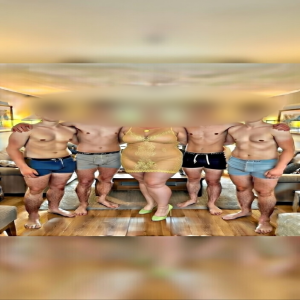 Ik liep langzaam de trap af, elke stap een zacht klikken van de hakken op het hout. Beneden in de woonkamer brandde alleen nog het zachte licht van de staande lamp en een paar kaarsen die we hadden laten staan. De jongens zaten op de bank en de fauteuils, al in hun boxers maar de sfeer was veranderd. Zwaarder. warmer. Hongeriger.