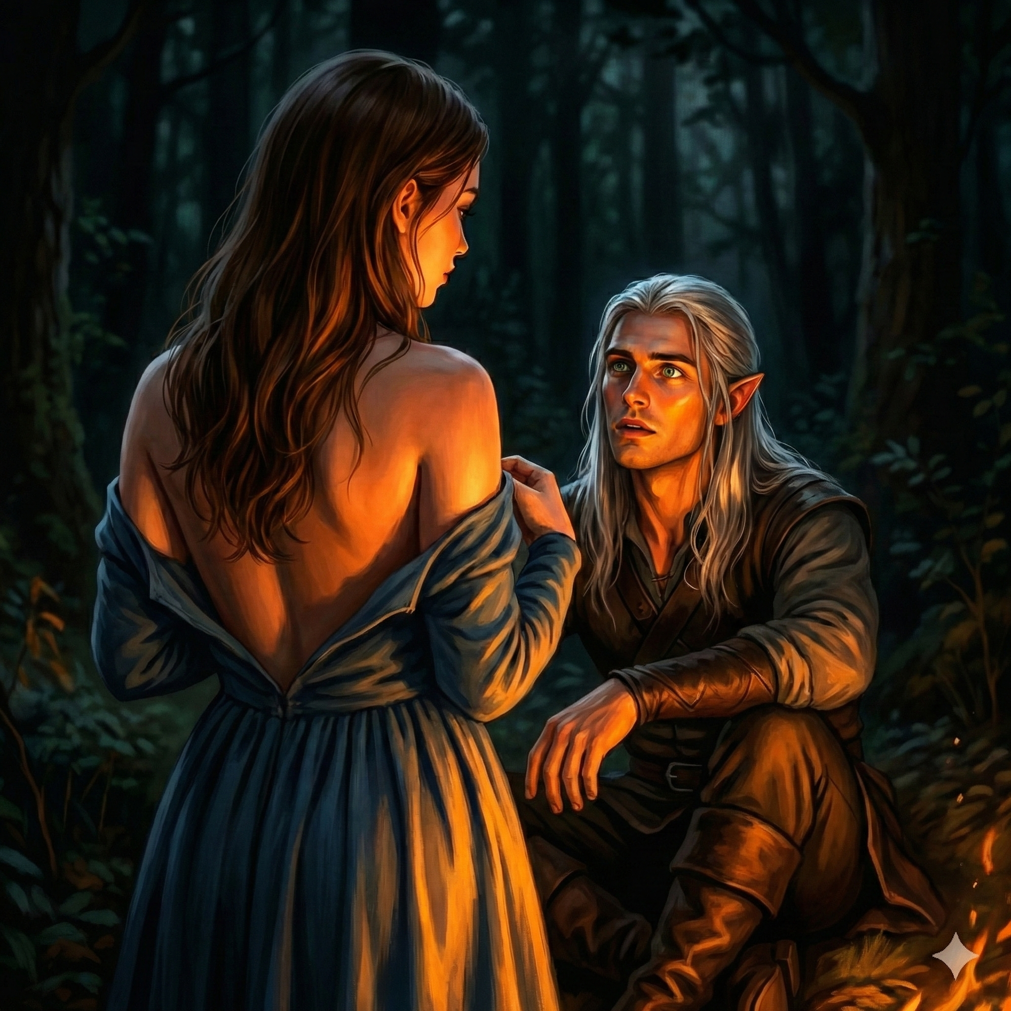 Maar dat is morgen. Nu is er alleen het knetteren van het vuur, de warmte van Aliya’s huid, en de zachte ademhaling van een half-elf die voor het eerst in dertig jaar iets van vrede heeft gesloten met zichzelf. En dat is voor nu genoeg.
