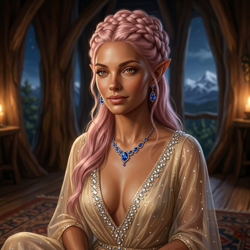 De vrouw tegenover ons lacht zacht. "Mijn naam is Aelyonis. Jullie mogen me zo noemen. 'Elf-Moeder' is een titel, maar hier, in mijn woning, is dat niet nodig."