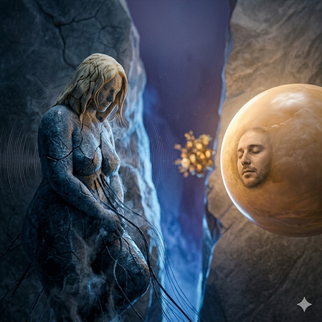 Maar ik voel niets. Of nee, dat is niet waar. Ik voel een koude, zware steen in mijn maag. Ik voel de duisternis die aan mijn enkels trekt. Ik voel de drang om te verdwijnen. En daaroverheen komt de schuld. Ik wil hem dankbaar zijn, maar mijn emotionele bandbreedte is opgebruikt door de pijn. Er is geen ruimte voor licht. Het is alsof ik in een brandend huis sta en iemand geeft me een prachtig boeket bloemen. Ik zie dat de bloemen mooi zijn, ik weet dat het gebaar lief is, maar ik ben te druk bezig met niet verbranden om ze aan te pakken. Dat maakt me geen slecht mens. Dat maakt me iemand die in