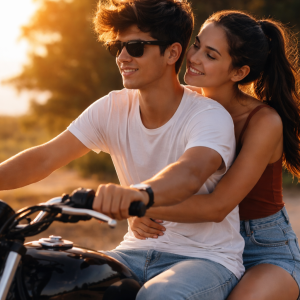 Ik had geen idee dat Travis hier zo goed in is, nu pas kwam ik te weten dat hij thuis aan nature-crossing doet. Hij racet regelmatig op een speciaal aangelegd circuit in de bergen, niet ver van ons stadje. En dat is nu wel te merken, we rijdend zigzaggend door het verkeer, wat me regelmatig een hartverzakking bezorgt. Op een gegeven moment schreeuw ik in zijn oor of het niet wat minder kan, maar dat kan niet, roept hij terug, want dat zijn al die andere toeristen ons straks voor en die drukte wil hij nou juist te snel af zijn. Daarom heb ik op een gegeven moment maar mijn ogen gesloten, erop vertrouwend dat het goed gaat. Sinds die tijd voelt het fijn. Ik zit stevig tegen zijn rug geplakt, mijn armen om zijn buik, mijn benen om zijn heupen geklemd en laat het zo allemaal over me heen komen. Het is fijn om zo tegen hem aan te zitten.