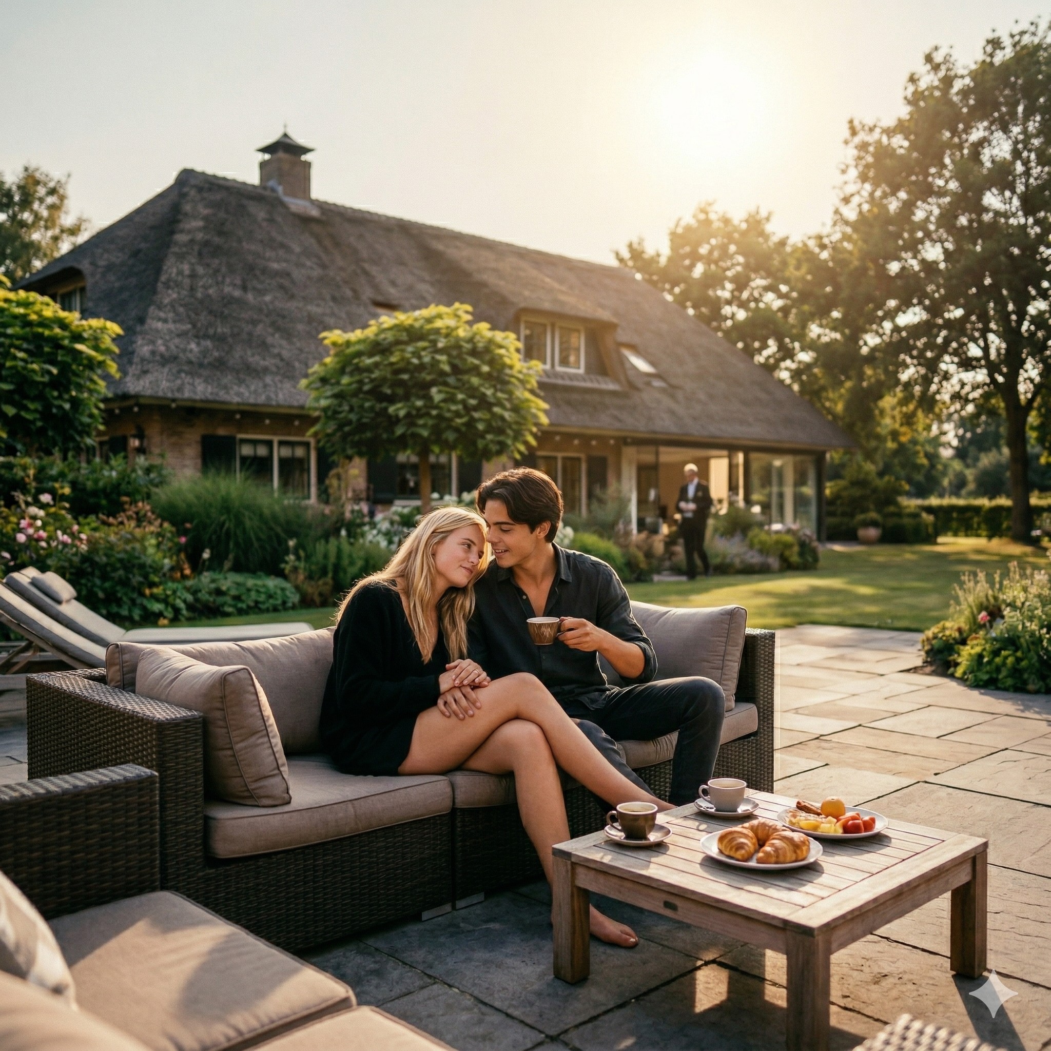 We liepen terug naar binnen, de villa in die nu echt als ons gezamenlijke thuis voelde. De zon scheen door de hoge ramen en de dag lag voor ons.