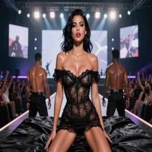 Yumi buigt diep, haar klitpiercing glinstert onder de lichten. „Dankjewel, jury—“ haar stem is een fluistering, haar blik glijdt naar Rico, „—ik hoop dat ik morgen nog een kans krijg om jullie dieper te laten kijken.“