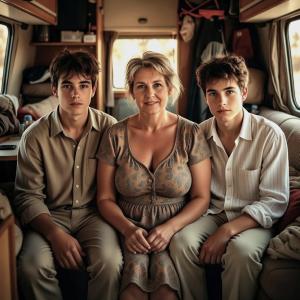 Ik zag haar bloes op de grond van de camper liggen en ik verslikte mij. Wat zou Vader wel zeggen als hij wist wat hier gebeurde? Hier zat mijn moeder met twee jonge jongens, haar beha hing los, haar rok was opgeschoven tot aan haar billen, haar bloes lag op de grond, en gelet op de blikken van mijn neef, zo begerig als hij naar haar keek, zou haar beha er binnenkort wel naast komen te liggen!