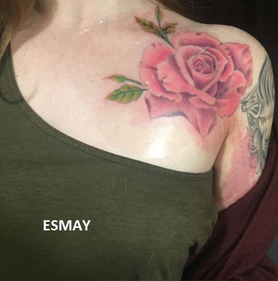 Ik heb Shadow nog een andere foto gestuurd van mijn tattoo, die mag hij bij het verhaal zetten. Zo kan je naast de leeuwin ook de mooie roos boven mijn linkerborst zien! Mooi hé?