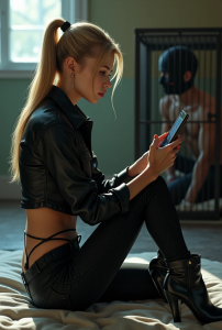 "Herken je deze video's, 'slaaf'?" vroeg ze spottend, haar stem zwaar van dominantie. "Je hebt wat uit te leggen."