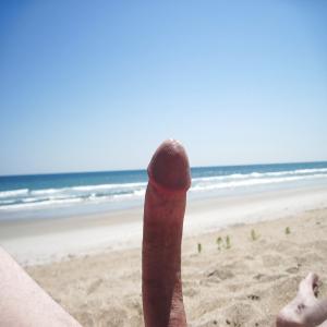 Zes apart staande strandhutjes en een bord op een paal in het zand is het signaal dat het naakt strand begon, ik stopte en trok mijn zwembroek uit, rolde hem op en stak hem in een van de pockets in mijn harnasje. Tegelijkertijd greep ik mijn mobieltje, zette hem op selfie mode en plaatste op het zand. Drie seconden timer was genoeg en een foto van mijn staalharde pik en ballen was voor Instagram later.