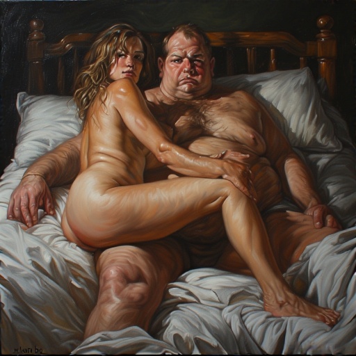 Terwijl ik rechtop zat hield hij de kamerjas open en keek hij met grote ogen naar mijn lichaam.Ik gunde hem even zijn pleziertje, ik wist dat hij heel dronken moest zijn en het niet lang zou uithouden. Spijtig genoeg zat er nog veel energie in dat enorme lijf verborgen, hij hield me goed vast.