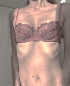 Dat Gaëlle een mooi lichaam had, vermoedde ik al, en nu werd duidelijk hoe aantrekkelijker ze is. Rond de enkel droeg ze een bandje met parels en verder enkel een bikini waarvan het bovenstukje, een klein driehoekje, omgekeerd over de borsten hing. De tepels waren zichtbaar door de stof, net als de bolling van wat vermoedelijk een tepelpiercing was. Soms deed ze het staafje door haar tepel af, maar nu had ze het achteloos ingelaten.