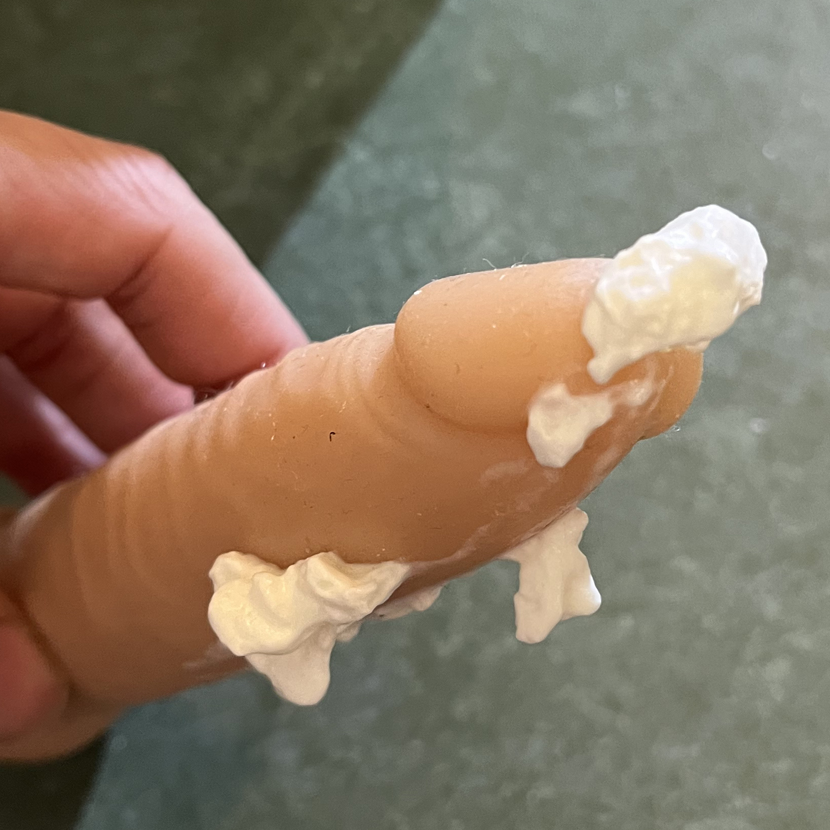 Ik kreeg nu wat glijmiddel rond mijn anus gesmeerd. Dit is van dat glijmiddel dat even in moet werken waardoor de penetratie iets gemakkelijker gaat omdat het de spieren in de omgeving ontspant.