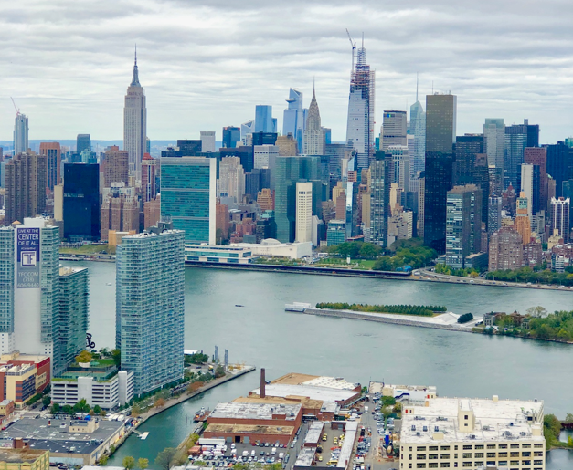 De woonkamer bood een mooi uitzicht op het stadsdeel Queens. Bij helder weer was in de verte de skyline van Manhattan zichtbaar.
