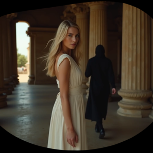 Eindelijk, in een grote zaal verlicht door honderden kaarsen, zag ze hem. Julius Caesar stond bij een raam, zijn rug naar haar toe gekeerd, zijn cape van purperen stof viel elegant over zijn schouders. Lisa’s hart sloeg een slag over. Hij was nog indrukwekkender dan ze had verwacht. Zijn aanwezigheid vulde de kamer, zijn kracht en autoriteit waren voelbaar, zelfs van een afstand.