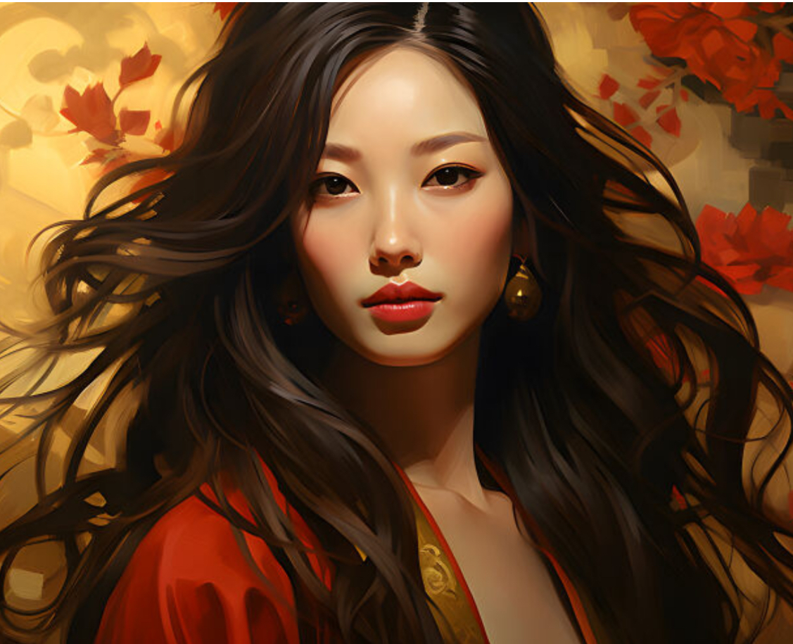 Haar haren los en geborsteld, gedrapeerd langs haar mooie gezicht, waar toch nog een subtiele make up rond de ogen is aangebracht. Een lange zwart doorschijnende kimono en een paar glanzend zwarte hold up kousen met een brede zwart kanten rand.
