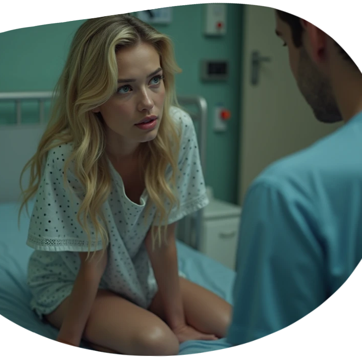 Hij kwam dichterbij, zijn ogen gleden over Lisa’s lichaam. Ze droeg een losse ziekenhuishemd, maar het kon haar slanke figuur niet verbergen. Hij keek naar haar borsten, die voller waren dan ooit, en zijn blik viel op de donkere tepels die door de stof heen schemerden.