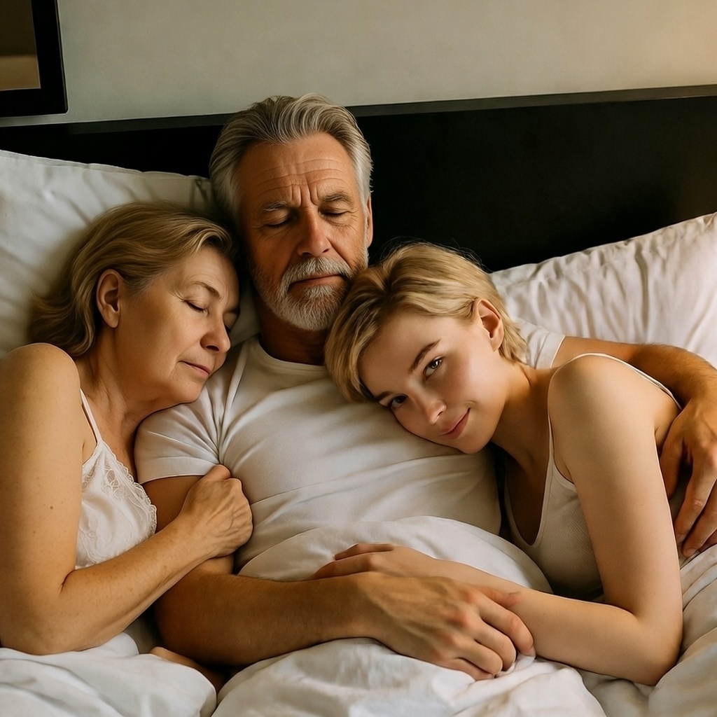 De stilte was intens. Ik was me bewust van elk geluid, elk kraakje in de vloer, de wind buiten, elke ademhaling die Papa nam. Het was zo spannend dat ik wilde dat het nooit ophield. Ik legde de lippenstift neer en liep naar het bed, alleen maar om nog even naar Papa te kijken. En ik stopte mijn vinger in mijn spleetje en begon hem rond te draaien.