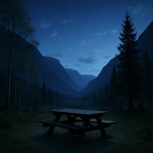 De parkeerplaats was ruim genoeg voor een aantal campers met in het midden een houten picknicktafel. Verder was er niks, anders dan de prachtige natuur enkele honderden meters boven zeeniveau. Ze waren tot nog toe alleen. Waarschijnlijk omdat het nog vroeg was. De meeste reizigers kwamen meestal rond etenstijd aan, maar gezien Melle’s ritme en eetlust ging hun voorkeur naar een iets vroeger tijdstip uit.