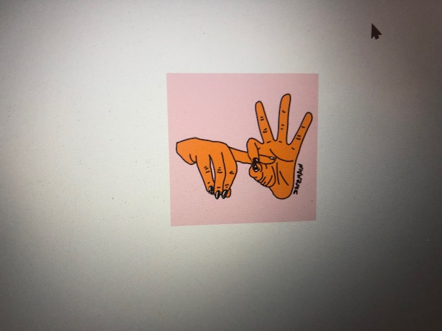 Ik stuur een plaatje mee met een vinger door een gaatje.
