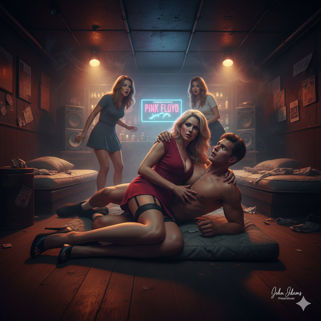 Terwijl de muziek van Pink Floyd door de donkere ruimte galmde, gingen de deuren open en kwamen Helga en Kim binnen. Ze zagen er zoals altijd fantastisch uit in hun korte rokjes en hoge hakken. De verbazing op hun gezichten was groot toen ze mijn moeder daar op de matrassen zagen liggen, innig verstrengeld met Bas in ons vaste, donkere hoekje.