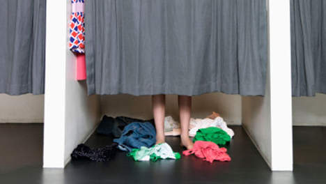 ‘Zullen we vanmiddag dan wat leuke kleren gaan kopen’ stelde ik aan Suzan voor. Daar was ze natuurlijk wel voor te porren want zo vaak ging ik niet mee. We begonnen bij een mooie lingeriezaak die gelukkig nog rustig was op zaterdag. Slechts een paar stellen en een leuke gespierde blonde man van begin twintig die op een bankje voor de paskamers zat te scrollen terwijl hij op zijn vriendin wachtte. Mijn dertigjarige vrouw Suzan had een zwart kanten lingeriesetje uitgezocht toen ze naar de paskamer liep en opeens stopte. "Zeg, Pieter," zei ze "vind je het erg als ik deze ook in het rood kies? Ik denk dat ik ze allebei ga proberen en kijken welke het beste staat." "Geen probleem" antwoordde ik, terwijl ik terugliep naar het rek waar ze het prachtige setje had gevonden.