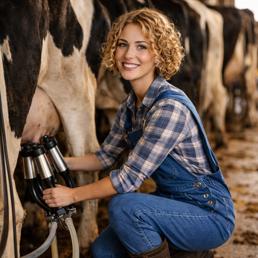 Het is koud, ik doe daarom eerst een warm fleecejack aan en daar overheen mijn overall. Als we in de stal komen is het al een drukte van belang, de koeien zijn onrustig. Ze loeien er lustig op los en staan al in de rij voor de melkkamer of scharrelen elkaar in de weg lopend nog wat rond. Thuis in Wenen kwam ik nooit met deze dieren in contact, ik merk dat ik ze wel leuk vind. Ze hebben iets zachtaardigs, zoals ze je aankijken. Het enige vervelende is al die poep, jeetje, wat kunnen die dieren een hoop produceren.