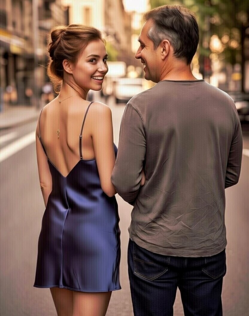 Toen ze de eetkamer binnenkwam, waar Erik al aan tafel zat met een glas wijn in zijn hand, stokte zijn adem. Het jurkje accentueerde haar ranke figuur perfect: het zat strak om haar middel, viel zacht over haar heupen en eindigde zo hoog dat het bij elke stap een gevaarlijk spel speelde met wat het wel of niet bedekte. Ze liep op hoge hakken – zwart, met een dunne band om de enkel – en het getik van de hakken op de parketvloer vulde de kamer als een sensueel ritme.