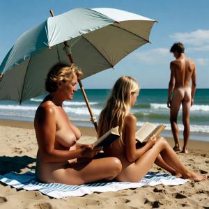 “Daar heb je eigenlijk wel gelijk in,” antwoordde Mama terwijl ze ook haar bikinibroekje uittrok.