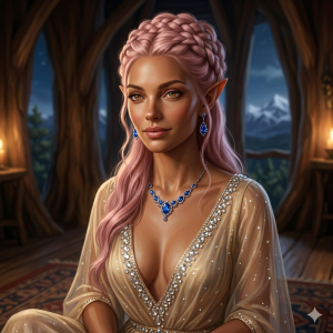 De vrouw tegenover ons lacht zacht. "Mijn naam is Aelyonis. Jullie mogen me zo noemen. 'Elf-Moeder' is een titel, maar hier, in mijn woning, is dat niet nodig."