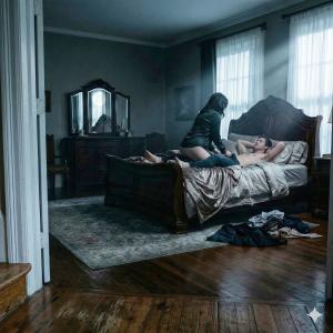 Onze voetstappen klonken hol op de houten trap terwijl we naar de bovenverdieping renden. De stilte in het grote, lege huis maakte de spanning alleen maar groter; elke zucht en elke aanraking leek uitvergroot. Boven aangekomen trapte ze de deur van de master-bedroom open. Het grote bed van haar ouders stond daar als een eiland van luxe in de duisternis, verlicht door het flauwe schijnsel van de maan dat door de gordijnen viel.